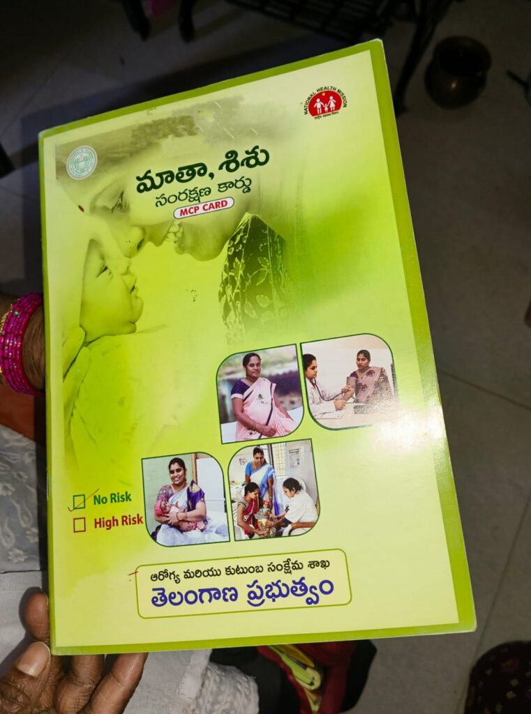 కూకట్పల్లి మండలం అల్లాపూర్ డివెసైన్, వి.వి.నగర్ నందు ఈరోజు ఆశ వర్కర్ శ్రీలక్ష్మి గారు , ప్రభుత్వం అందిస్తున్న (మాత శిశు శంరక్షణ ) పధకం లో భాగంగా, మా యొక్క పరిధిలో ఉన్నటువంటి గర్భిణీ స్త్రీ హెల్త్ అండ్ వేక్సిన్ తెలియ పరచటం కోసం రావటం జరిగింది,మా యొక్క పరిధి లో వున్న గర్భిణీ స్త్రీల తో మాట్లాడి వారి యొక్క వివరాలు నమోదు చేయించటం జరిగింది .అలాగే తీసుకోవాల్సిన ఆరోగ్య జాగ్రత్తలు , పాటించాల్సిన ఆహార నియమాలు తెలియజేశారు.ప్రభుత్వం అందించిన సేవలు అందుపుచ్చుకోవలని , గర్భిణీ స్త్రీలు వారి యొక్క వివరాలు (మాత శిశు శంరక్షణ ) కార్డు లో పొందుపర్చుకోవాలని, ఆశ వర్కర్ శ్రీలక్ష్మి గారు కోరారు.