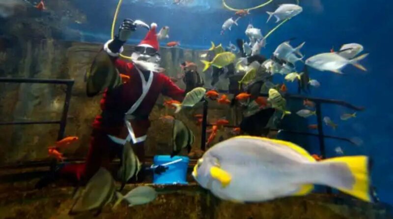 கிறிஸ்துமஸ் நெருங்குவதை முன்னிட்டு, ஒரு வித்தியாசமான சுவாரஸியமான நிகழ்வு அங்கே நடந்தேறியுள்ளது. கிறிஸ்துமஸ் தாத்தா சாண்டா கிளாஸ் நீர் மூழ்கி சாதனங்களை அணிந்துக்கொண்டு, பரிசுகள் நிறைந்த ஒரு சாக்கு மூட்டையுடன் அந்த நீர்த்தொட்டியில் இறங்குகிறார். இறங்கிய அவர், அங்கே சுற்றி வரும் பல வண்ண கடல் மீன்களுக்கு உணவளிக்க ஆரம்பிக்கிறார்.அவர் உணவளிக்க ஆரம்பித்தவுடன் அங்குள்ள மீன்கள் அவரிடம் பாய்ந்து வருகின்றன.