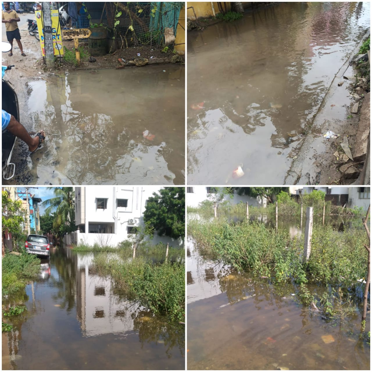 இதனால் மழை தண்ணீர் அங்கங்கே தேங்கி நிற்கிறது. அதன் ஒரு பகுதியில் செங்கல்பட்டு மாவட்டம், திருப்போரூர் ஒன்றியம், கானத்தூர் ரெட்டி குப்பம் ஊராட்சி, கானத்தூர் ரெட்டிக்குப்பம் சாலையில் வாஞ்சிநாதன் தெரு, சர்தார் வல்லபாய் பட்டேல் 2வது தெரு மற்றும் இதர தெருவில் மழை தண்ணீர் வெள்ளம்போல் நின்று வருவதால் அந்த பகுதியில் உள்ள மக்கள் வெளியே செல்வதற்கு பெரும் சிரமமாக இருந்து வருகிறது.