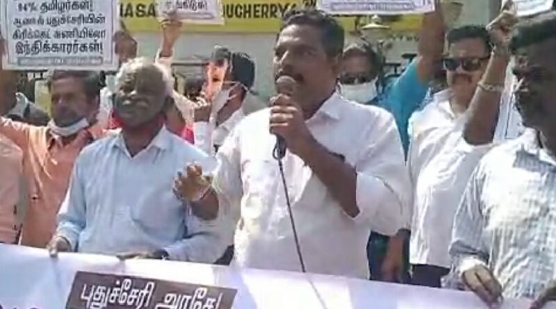 கிட்டத்தட்ட 94 விழுக்காடு தமிழர்கள் வசித்து வரும் புதுச்சேரியின் கிரிக்கெட் அணியில் முழுக்க முழுக்க இந்திக்காரர்களே ஆக்கிரமித்து நிற்கும் அவலத்தை எதிர்த்தும், புதுச்சேரி – காரைக்கால் தமிழ் இளைஞர்களுக்கே 90 விழுக்காட்டு இடங்களை ஒதுக்க வேண்டுமெனக் கோரியும் இன்று (26.12.2020) காலை 10 மணிக்கு, புதுச்சேரி இராஜா திரையரங்கம் முன்பு தமிழின உணர்வாளர்களும், மட்டைப்பந்து வீரர்களும் தமிழ் தேசிய பேரியக்கத்தின் தோழர்கள் தமிழ் இன உணர்வார்கள் ஒன்று கூடி ஆர்பாட்டம் நடத்தினர்.