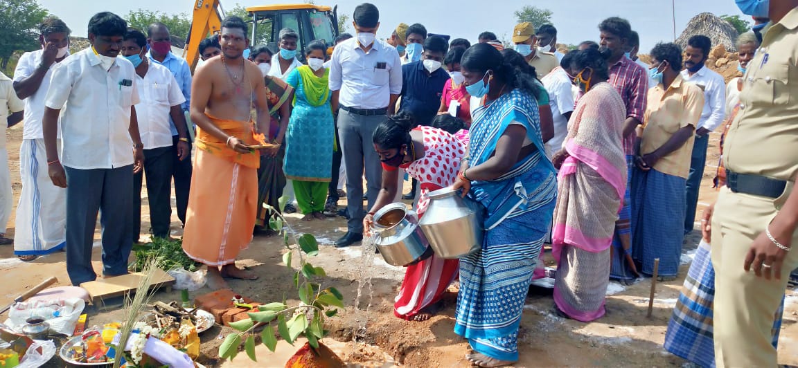 திருவண்ணாமலை மாவட்டம் செங்கம் அடுத்த கரியமங்கலம் ஊராட்சி பெரியகுளம் பகுதியில் வசிக்கும் பழங்குடியின வகுப்பைச் சார்ந்த 23 பயனாளிகளுக்கு தமிழக முதலமைச்சரின் பசுமை வீடு திட்டத்தின் கீழ் 1.35 கோடி மதிப்பீட்டில் வீடு கட்டும் பணியினை மாவட்ட ஆட்சியர் சந்தீப்நந்தூரி பூமி பூஜை செய்து துவக்கி வைத்தார்.