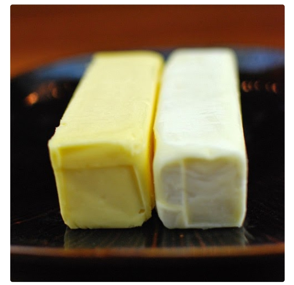 இப்போ வெள்ளை நிற வெண்ணை பற்றி தெரிஞ்சுப்போமா! அதாவது, மஞ்சள் நிறத்துக்கு அப்படியே நேர் எதிர் தான் நம்ம வெள்ளை வெண்ணை. இவங்க பேரு அன்-சால்ட்டட் பட்டர்!