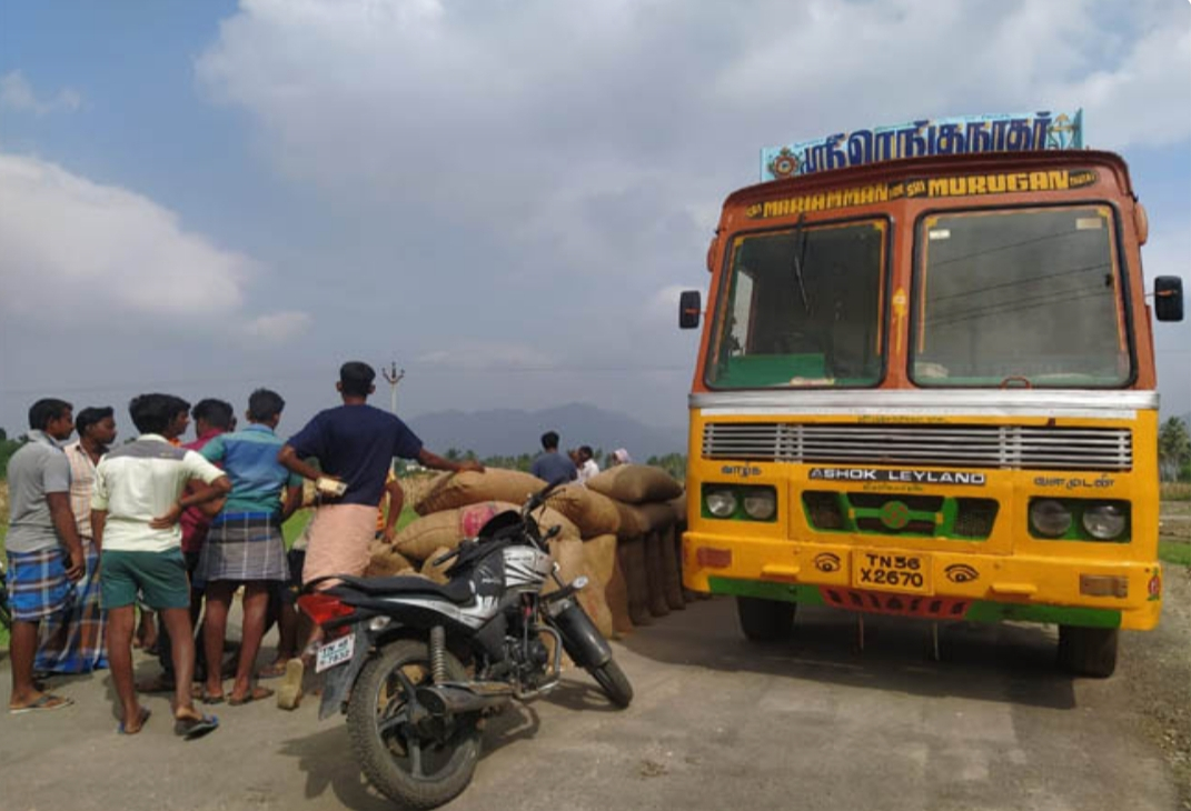 இந்த நிலையில் செங்காட்டுப்பட்டியைச் சோ்ந்த வியாபாரி சரவணன் என்பவர் வழக்கமாக துறையூா் விவசாயிகளிடம் வந்து மக்காச்சோளத்தைக் கொள்முதல் செய்து செய்து வந்துள்ளார். அதன் தொடர்ச்சியாக நேற்று (02/01/2021) மக்காச்சோளத்தைக் கொள்முதல் செய்ய இரண்டு லாரிகளில் சரவணன் வந்துள்ளார்.