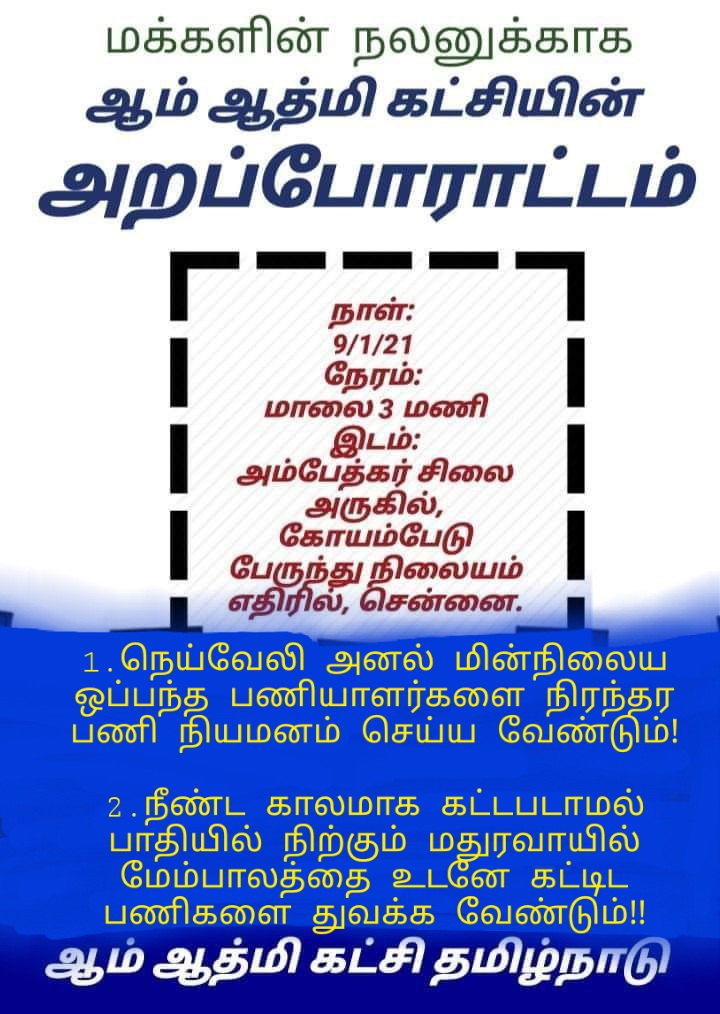 ஆம்ஆத்மிகட்சி போராட்டம்! 9/1/2021 மாலை 3 மணி