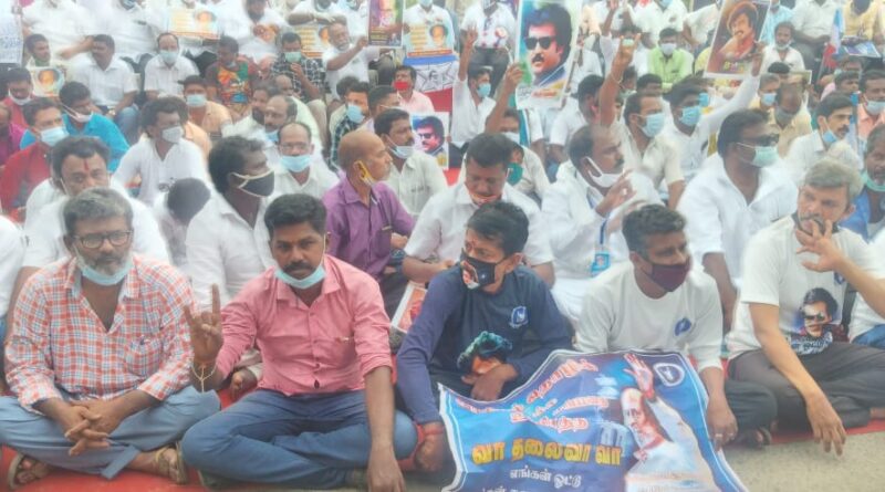 டிசம்பர் 29 திரு ரஜினிகாந்த் அவர்கள் அரசியலுக்கு வரப்போவதில்லை என்ற முடிவை அறிவித்து இருந்தார் அவர்களின் முடிவை மறுபரிசீலனை செய்யக்கோரி சென்னையில் வள்ளுவர் கோட்டத்தில் நடந்தஅமைதிப் போராட்டம்