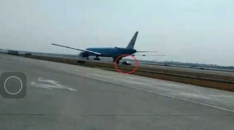 விமானம் தரையிறங்கும் போது ஓடுதளத்தில் சென்ற கார்?