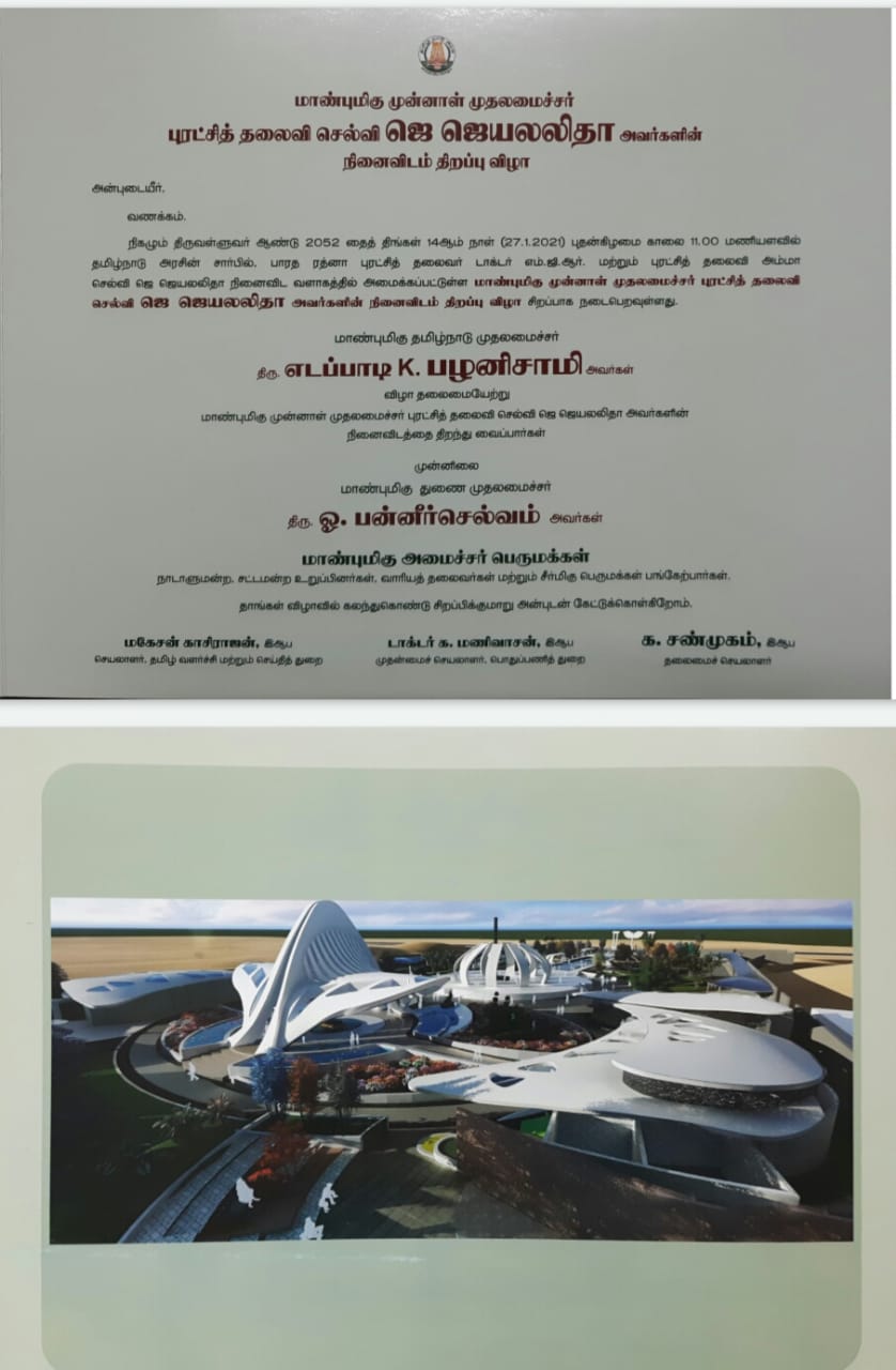 முன்னாள் முதலமைச்சர் ஜெயலலிதா நினைவிட திறப்பு விழா அழைப்பிதழ்!