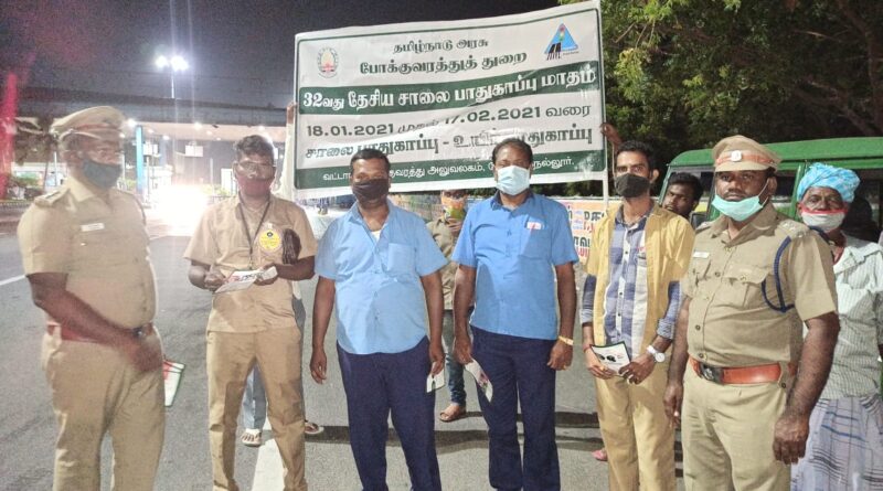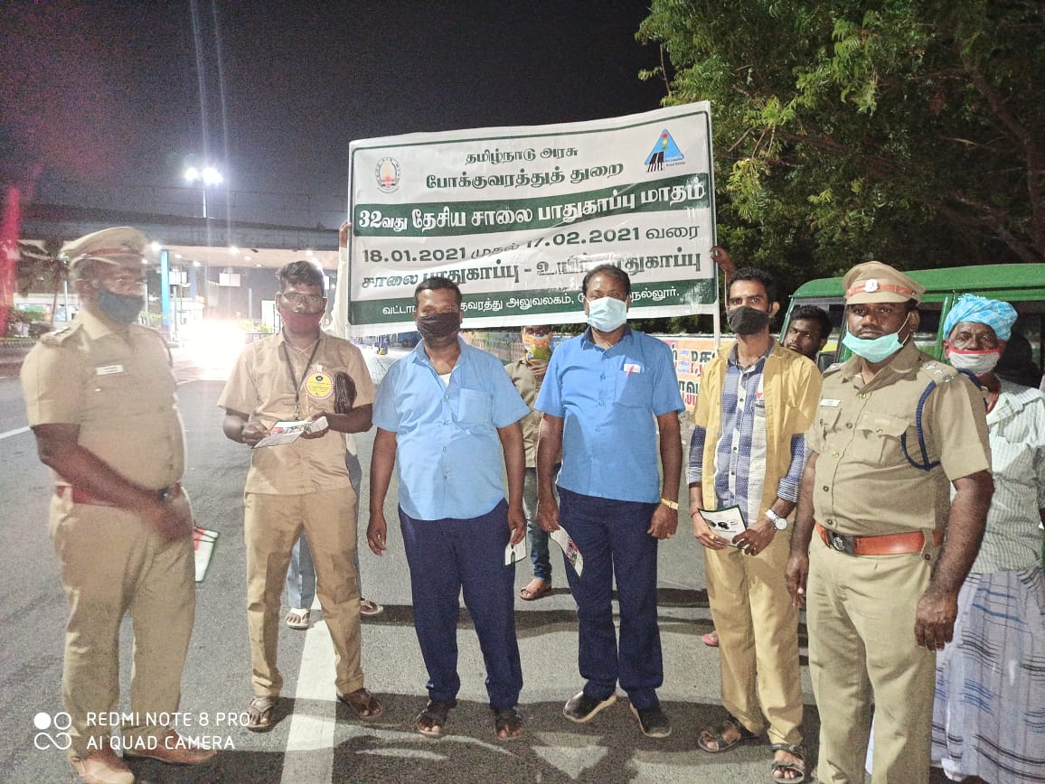 கடந்த வெள்ளிக்கிழமை கிழக்கு கடற்கரை சாலையில் அமைந்துள்ள சுங்கச்சாவடியில் 32வது தேசிய சாலை பாதுகாப்பு மாதம் நிகழ்ச்சி நடைபெற்றது. இதில் சோழிங்கநல்லூர் RTO ஆய்வாளர் C. முரளி மற்றும் P. இராஜேந்திரன் ஆகியோர் தலைமையில் சாலை பாதுகாப்பு – உயிர் பாதுகாப்பு விழிப்புணர்வு துண்டு பிரசுரங்களை பொது மக்களுக்கு வழங்கினார்கள்.