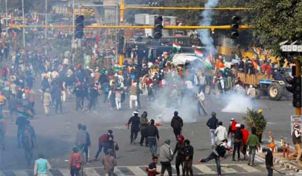 டெல்லிக்குள் நுழைந்த விவசாயிகள் செங்கோட்டைக்குள் நுழைந்து, அங்குள்ள கோபுரத்தில் விவசாய கொடிகளை ஏற்றினர். இதனால் போலீசாருக்கும் விவசாயிகளுக்கும் இடையில் தள்ளு முள்ளு ஏற்பட்டது. போலீசார் தடியடி நடத்தியும், கண்ணீர் புகை குண்டு பயன்படுத்தியும் விவசாயிகளை அங்கிருந்து அப்புறப்படுத்தினர். இதில் 50-க்கும் மேற்பட்ட போலீசார் காயம் அடைந்தனர். விவசாயிகளும் காயம் அடைந்தனர்.