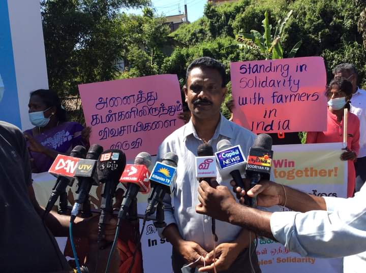 இந்திய விவசாயிகளின் போராட்டத்திற்கு ஆதரவாக இலங்கையில் யாழ்ப்பாணம் மற்றும் தமிழர்கள் செறிந்து வழிம் மலையகத்தில் சில பகுதிகளில் நேற்று அமேதியான முறையில் ஆர்ப்பாட்டங்கள் நடைபெற்றது