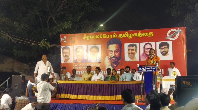 சென்னையை அடுத்த மூலக்கடை பகுதியில் மக்கள் நீதி மையம் சார்பில் பொதுக்கூட்டம் நடைபெற்றது இதில் மக்கள் நீதி மய்யம் பொது செயலாளர்கள் மற்றும் நிர்வாகிகள் பொதுமக்கள் பெருந்திரளானோர்