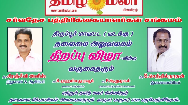 Read Moreதமிழ்மலர் மின்னிதழ் மதிப்பிற்குரிய நிறுவனர் &தலைமை ஆசிரியர் சிரஞ்சீவி அனிஸ் சார் அவர்களுக்கும் மதிப்பிற்குரிய இணையாசிரியர் செந்தில்நாதன் அவர்களுக்கும் மற்றும் தமிழ்மலர் மின்னிதழ் சார்ந்த அனைத்து தலைமை