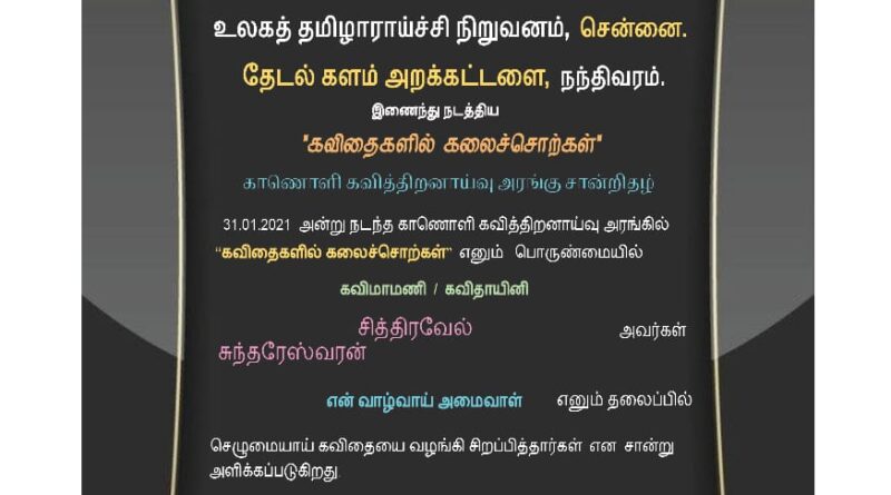 சிந்தனைக்குஒருநிமிடம்பாவேந்தரும்தமிழும்*????????தன்னில்இருந்துமலர்ந்துவரும்ஒலிதம்+இழ்_தமிழ்என்றானது.தமிழ்ச்சொற்களின்வேர்ச்சொல்லைபிறமொழிகளில்இருந்துஅறியமுடியாது.மற்றமொழிகளின்வேர்ச்சொற்களைதமிழில்இருந்துஅறியலாம்..⛱️(செந்தமிழைப்பொதுமொழியாய்ஆக்குதற்குச்சிந்தித்ததுஉண்டா?நீர்?சீர்தமிழ்போலஎந்தமொழிஎளிதிங்கு?வேர்ச்சொல்மிக்கஎளியமொழிஅரியமொழிதமிழேஆகும்.!!!!.)?இந்திமொழியைபொதுவாக்கத்துடிப்பவர்கள்தமிழைஏன்?பொதுமொழியாக்கத்நினைப்பதில்லை.உலகத்தில்எந்தஒருபோராட்டமும்அவரவர்தாய்மொழியிலேயேநடைபெற்றது.வரலாறுவெற்றியைஎளிதாக்கியது…தமிழ்உலகம்உள்ளவரைபாவேந்தரின்பாடல்வரிகள்நின்றுஒளிவீசும்எப்படி?⛱️(நெஞ்சம்தமிழ்மரபின்வீரத்தொகுப்பு!தண்டைகுலுங்கஓடிவா?என்சங்கநாதத்தமிழேஓடிவா?பாரோர்புகழ்தமிழ்ச்சேயே!பகையஞ்சிடும்தீயே!தன்னலமேவேம்புதமிழ்நலமேகற்கண்டு-)என்றுபாவேந்தர்மொழியின்உச்சக்கட்டஉரைகல்லாககுயில்இதழில்எழுதிப்பாடினார்..தமிழ்மொழிபேசும்தமிழன்பெருமைஎங்கேதெரியும்?பண்பாடுஎங்கேதென்றலாய்வீசும்.?பிறர்மனங்குளிரும்இடம்எங்கே?விருந்தோம்பல்தமிழரின்உயர்ந்தபண்பாடு..குடும்பவிளக்கில்பாவேந்தர்?(இட்டுப்பார்உண்டவர்இன்புற்றுஇருக்ககையிலேதொட்டுப்பார்உன்நெஞ்சில்தோன்றும்இன்பம்!நற்றமிழர்சேர்த்தபுகழ்ஞாலத்தில்என்னவெனில்உற்றவிருந்தைஉயிரெனபெற்றுஉவத்தல்..நன்று)என்றுபாடுகிறார்????????மு.பாராதிதாசன்ஆசிரியர்பாவேந்தர்அறக்கட்டளைநிறுவனர்பாவேந்தர்முழக்கம்இன்னிசைப்பட்டிமன்றநடுவர்காரைக்குடிசிவகங்கைமாவட்டம்