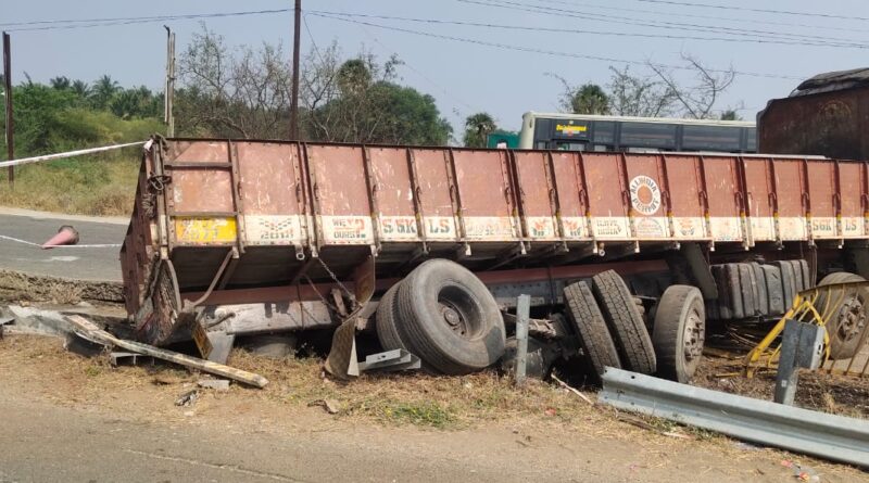 திருப்பூர் மாவட்டம் அவிநாசி பெருமாநல்லூர் நெடுஞ்சாலையில் டிரைவரின் கவனக்குறைவால் விபத்து. செய்தியாளர் S.தனுஷ்கோடி தமிழ்மலர் மின்னிதழ்