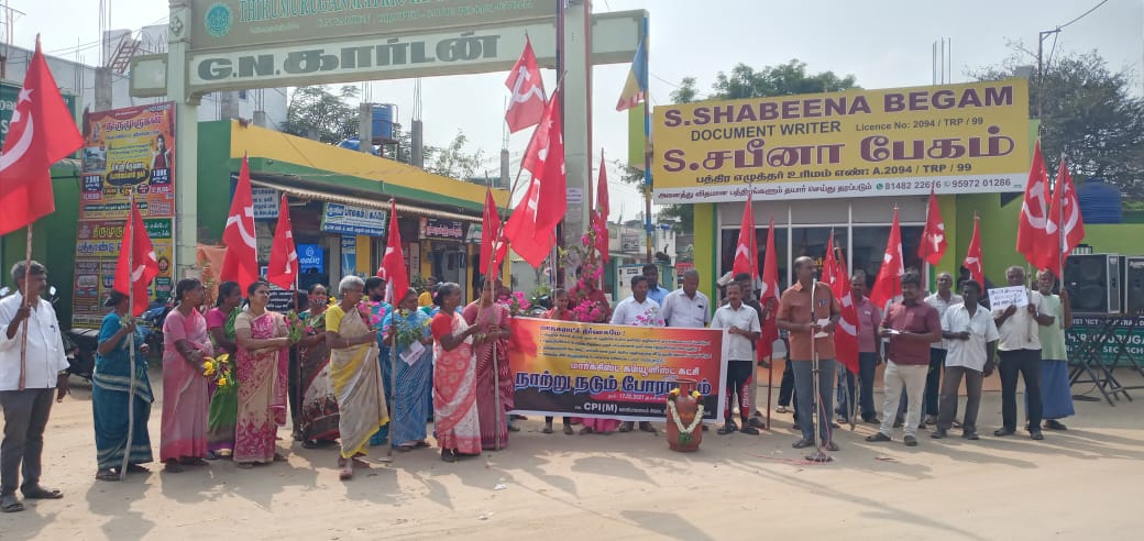 மார்க்சிஸ்ட் கம்யூனிஸ்ட் கட்சியின் சார்பில் நாற்று நடும் போராட்டம்.