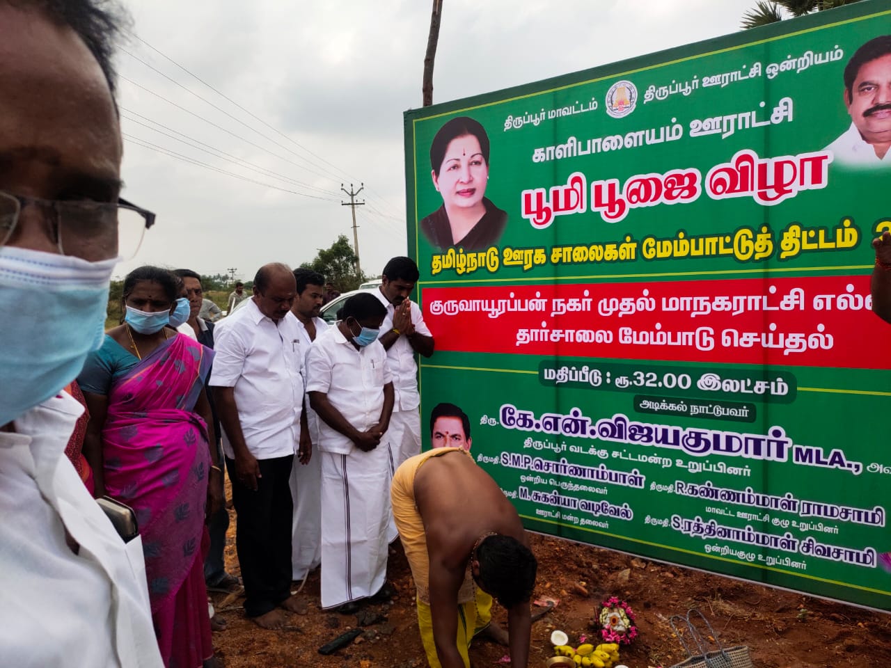 தமிழகம் விஜயகுமார் பூமிபூஜை வருகை February 23, 2021 AASAI MEDIA திருப்பூர் வடக்கு சட்டமன்ற உறுப்பினர் விஜயகுமார் 108 வீடு காளிபாளையம் சாலை பணி பூமிபூஜை வருகை தந்தபோது நமது பாட்டாளி மக்கள் கட்சியின் வடக்கு மாவட்ட கொள்கை பரப்புச் செயலாளர் பரமசிவம் பொன்னாடை போர்த்திய போது. செய்தியாளர் விஜயராஜ் தமிழ்மலர் மின்னிதழ்