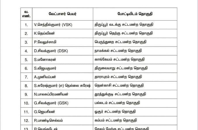 சட்டமன்ற தேர்தலில் போட்டியிடும் முதல் வேட்பாளர் பட்டியல் வெளியீடு.