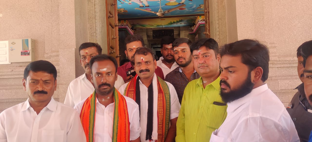 திருப்பூர் மாவட்டம் தாராபுரம் சட்டமன்ற தொகுதியில் போட்டியிடும் பாஜக மாநிலத் தலைவர் திரு எல் முருகன் அவர்கள் தாராபுரம் சட்டமன்ற தொகுதிக்குட்பட்ட மூலனூர் பணிமனை திறப்பு விழா மற்றும் வஞ்சியம்மன் கோவில் தோழமைக் கட்சி நிர்வாகிகளுடன் சாமி தரிசனம் செய்த போது எடுத்த புகைப்படம்.