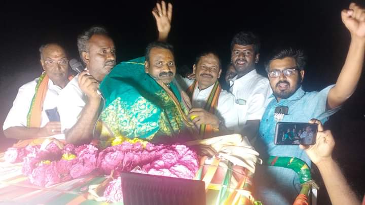 திருப்பூர் மாவட்டம் தாராபுரத்தில் பாரதிய ஜனதா கட்சியின் மாநில தலைவர் த முருகன் அவர்களுக்கு இந்து மக்கள் கட்சியின் சார்பில் தமிழ்திரு அர்ஜுன்சம்பத் அவர்கள் சால்வை அணிவித்து வாழ்த்து செலுத்திய பொழுது எடுத்த படம்