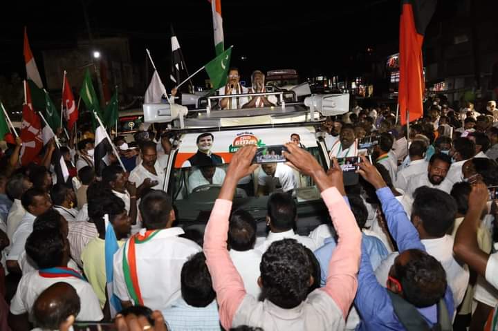 தமிழ்நாடு காங்கிரஸ் கமிட்டி தலைவர் கே.எஸ்.அழகிரி அவர்கள் பொன்னேரி சட்டமன்றத் தொகுதி காங்கிரஸ் வெற்றி வேட்பாளர் துரை சந்திரசேகர் அவர்களை ஆதரித்து மீஞ்சூர் பஜார் பகுதியில் பரப்புரை மேற்கொண்டார்.