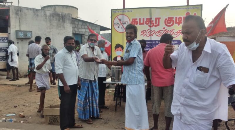திருப்பூர் வாவிபாளையம் பகுதியில் மார்க்சிஸ்ட் கம்யூனிஸ்ட் கட்சியின் சார்பில் தொடர்ந்து நான்காவது நாளாக கபசுர குடிநீர் வழங்கப்படுகிறது ஒன்றிய செயற்குழு உறுப்பினர் சிகாமணி அவர்கள் தலைமையில் நடைபெற்றது கட்சி நிர்வாகிகள் பொதுமக்கள் உள்பட பலர் கலந்து கொண்டனர் தமிழ் மகனின் நிலை செய்திருப்பதாக செய்தி ஆசிரியர் A.மருதமுத்து