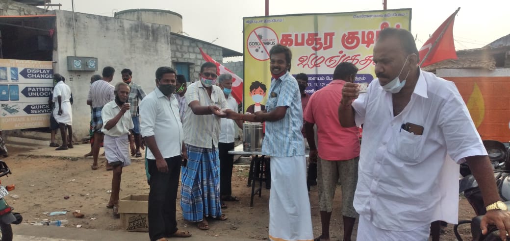 திருப்பூர் வாவிபாளையம் பகுதியில் மார்க்சிஸ்ட் கம்யூனிஸ்ட் கட்சியின் சார்பில் தொடர்ந்து நான்காவது நாளாக கபசுர குடிநீர் வழங்கப்படுகிறது ஒன்றிய செயற்குழு உறுப்பினர் சிகாமணி அவர்கள் தலைமையில் நடைபெற்றது கட்சி நிர்வாகிகள் பொதுமக்கள் உள்பட பலர் கலந்து கொண்டனர் தமிழ் மகனின் நிலை செய்திருப்பதாக செய்தி ஆசிரியர் A.மருதமுத்து