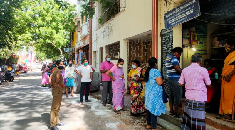 கொரானாவின் இரண்டாம் அலை அதிகமாக இருப்பதால் இந்த மே மாதம் 10 ஆம் தேதி முதல் 25ஆம் தேதி வரை ஊரடங்கு உத்தரவு பிறப்பித்துள்ளது. அதில் மக்களுக்கு கொரானா நிவாரண உதவி தொகையாக ரூபாய் 4000 அனைத்து குடும்ப அட்டைதாரர்களுக்கு வழங்கப்படும் என முதல்வர் ஸ்டாலின் கூறியது போல சென்னை அரும்பாக்கம் நியாயவிலை கடைகளில் முதற்கட்டமாக ரூபாய் 2000 வழங்குகின்றன. இதனை மக்கள் நீண்ட வரிசையில் சமூக இடைவெளியில் நின்று வாங்குகின்றனர்.