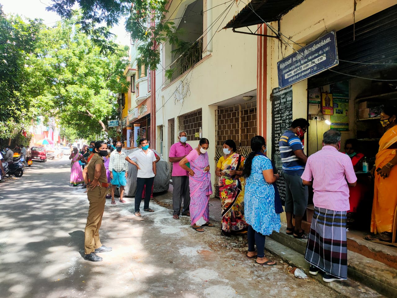 கொரானாவின் இரண்டாம் அலை அதிகமாக இருப்பதால் இந்த மே மாதம் 10 ஆம் தேதி முதல் 25ஆம் தேதி வரை ஊரடங்கு உத்தரவு பிறப்பித்துள்ளது. அதில் மக்களுக்கு கொரானா நிவாரண உதவி தொகையாக ரூபாய் 4000 அனைத்து குடும்ப அட்டைதாரர்களுக்கு வழங்கப்படும் என முதல்வர் ஸ்டாலின் கூறியது போல சென்னை அரும்பாக்கம் நியாயவிலை கடைகளில் முதற்கட்டமாக ரூபாய் 2000 வழங்குகின்றன. இதனை மக்கள் நீண்ட வரிசையில் சமூக இடைவெளியில் நின்று வாங்குகின்றனர்.