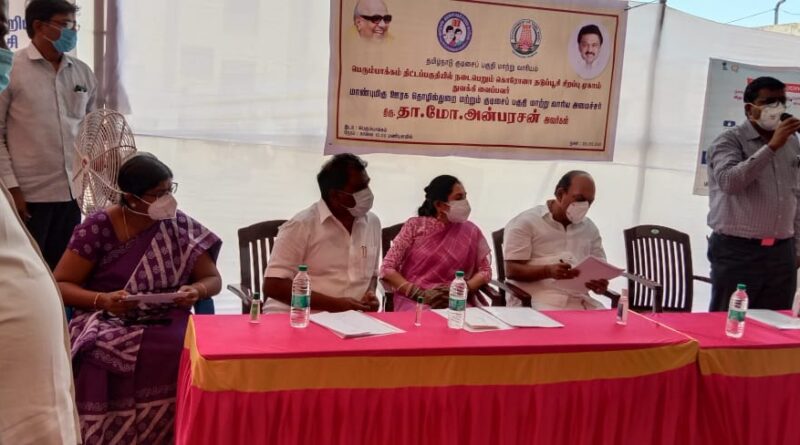 பெரும்பாக்கம் குடிசை மாற்று பகுதியில் கொரோனா தடுப்பூசி செலுத்திக்கொள்ளும் முகாமை