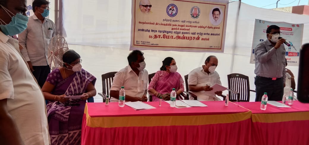 பெரும்பாக்கம் குடிசை மாற்று பகுதியில் கொரோனா தடுப்பூசி செலுத்திக்கொள்ளும் முகாமை