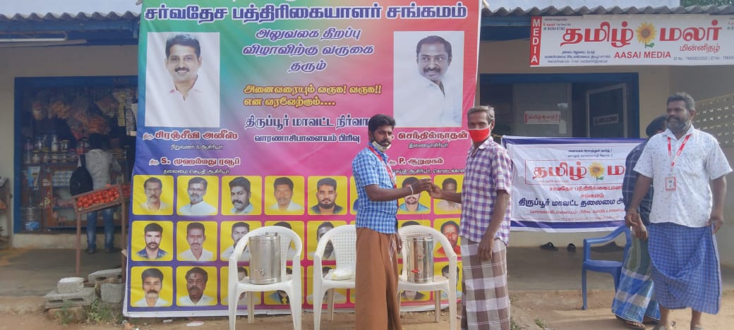 மக்கள் சேவையில் திருப்பூர் தமிழ்மலர் மின்னிதழ் ஆசை மீடியா நெட்வொர்க் மற்றும் தமிழ்மலர் மின்னிதழ் நிறுவனரும் தலைமை செய்தி ஆசிரியருமான திரு. சிரஞ்சீவி அணிஸ் அவர்கள் மற்றும் இணையாசிரியர் செந்தில்நாதன் இருவரின் வழிகாட்டுதலின்படி தமிழ்மலர் மின்னிதழ் ஒருங்கிணைப்பு குழு சார்பாக 20/5/2021தொடர்ந்து7 வது நாளாக கபசுர குடிநீர் நிகழ்ச்சி செய்தியாளர் திரு B.குமார் அவர்கள் தலைமையில் நடைபெற்றது இந்த நிகழ்ச்சியில் தமிழ்மலர் மின்னிதழ் ஒருங்கிணைப்புக் குழு சார்பாக மருதமுத்து சக்திவேல் விஜயராஜ் ஜீவா ஈஸ்வரன் குரு பாலா ஐயப்பன் சங்கர் வீரராஜ் உள்பட பொதுமக்கள் பலர் கலந்து கொண்டனர்