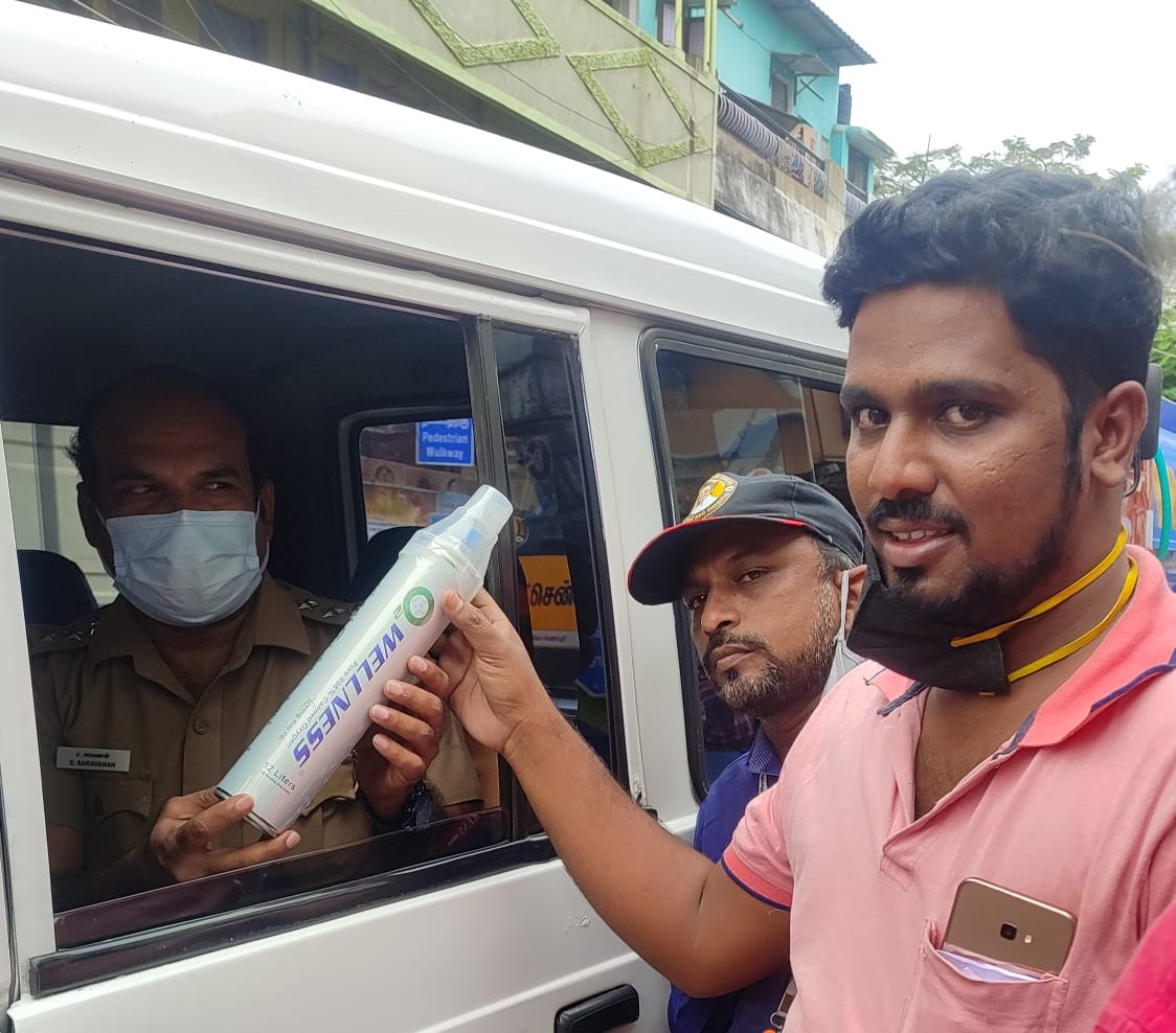 கொரோனா வைரஸ் பரவல் காரணமாக ஐஸ் ஹவுஸ் பகுதியில் D-3 காவல் ஆய்வாளர் அவர்கள் ரோந்து பணியில் செல்லும்போது,மனிதநேய ஜனநாயக கட்சியின் மத்திய சென்னை மாவட்ட செயலாளர் பிஸ்மில்லாஹ்கான் அவர்கள். தலைமையில், மாநில இளைஞர் அணி செயலாளர் அசாருதீன் முன்னிலையில், ஐஸ் ஹவுஸ் காவல் ஆய்வாளர் திரு, சரவணன் அவர்களுக்கு எமெர்ஜெண்சி ஆக்சிஜன் மரியாதை நிமர்த்தமாக வழங்கப்பட்டது. S.ரஹ்மான் தமிழ் மலர் மின்னிதழ் செய்தியாளர்.