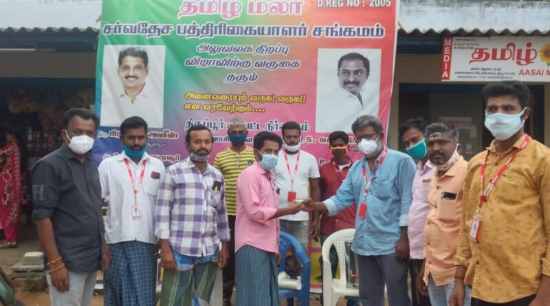 மக்கள் சேவையில் திருப்பூர் தமிழ்மலர் மின்னிதழ் ஆசை மீடியா நெட்வொர்க் மற்றும் தமிழ்மலர் மின்னிதழ் நிறுவனரும் தலைமை செய்தி ஆசிரியருமான திரு. சிரஞ்சீவி அணிஸ் அவர்கள் மற்றும் இணையாசிரியர் செந்தில்நாதன் இருவரின் வழிகாட்டுதலின்படி தமிழ்மலர் மின்னிதழ் ஒருங்கிணைப்பு குழு சார்பாக 22/5/2021தொடர்ந்து9 வது நாளாக கபசுர குடிநீர் நிகழ்ச்சி செய்தியாளர் திரு செய்தியாசிரியர் தென்றல் அவர்கள் தலைமையில் நடைபெற்றது இந்த நிகழ்ச்சியில் தமிழ்மலர் மின்னிதழ் ஒருங்கிணைப்புக் குழு சார்பாக மருதமுத்து சக்திவேல் விஜயராஜ் ஜீவா ஈஸ்வரன் குரு பாலா ஐயப்பன் சங்கர் அரவிந்த் காளிதாஸ் உள்பட பொதுமக்கள் பலர் கலந்து கொண்டனர்