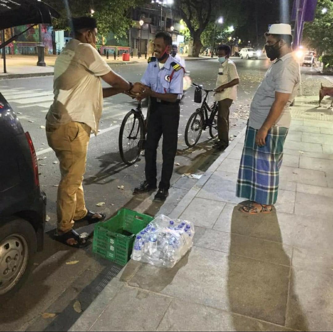இந்நிலையில் தமிழ்நாடு முஸ்லீம் முன்னேற்ற கழகம் தென் சென்னை மேற்கு தி. நகர் பகுதி நிர்வாகிகள் பசியால் வாடும் சாலையோர ஏழைகளுக்கு பசியை போக்க தொடர்ந்து 8 நாட்களாக 150 நபர்களுக்கு இரவு உணவு தண்ணீர் பாட்டிலுடன் விநியோகம் செய்து வருகின்றனர்.