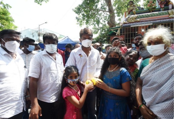 மேலும் அதே பகுதியில் உள்ள தடுப்பூசி முகாமை திரு/ உதயநிதி ஸ்டாலின் MLA, தொடங்கி வைத்து கொரானா நிவாரண பொருட்களை வழங்கினார். அப்பகுதியை சேர்ந்த மகேஷ் என்பவரின் குழந்தைகள் சஞ்சனா மற்றும் கீர்த்தனா ஆகியோரின் சேமிப்பு உண்டியலை இருவரும் சேர்ந்து முதலமைச்சரின் பொது நிவாரண நிதிக்கு சேப்பாக்கம் திருவல்லிக்கேணி சட்டமன்ற உறுப்பினர் திரு/ உதயநிதி ஸ்டாலின் அவர்களிடம் வழங்கினார்கள்,
