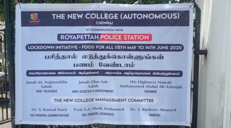 Read Moreசென்னை,இராயப்பேட்டையில் அமைந்துள்ள புதுக்கல்லூரி யானது தனது பேராசிரியர்கள் துணைக்கொண்டும் இராயப்பேட்டை காவல் நிலையத்தின் துணைக்கொண்டும் இணைந்து நடைபெறும் இலவச உணவு திட்டம்.இந்த இலவச உணவு திட்டமானது கடந்த