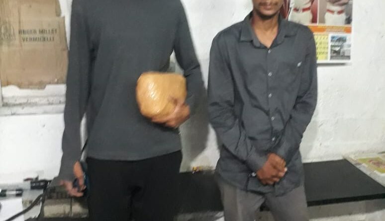 கோவையில் இருந்து கேரளாவிற்கு இரு சக்கரவாகனத்தில் கஞ்சா கடத்திய இருவர் தமிழக கேரள எல்லையான வேலந்தாவளம் சோதனைச் சாவடியில், வாகன சோதனையில் போலீசாரிடம் சிக்கினர்.அவர்களிடம் இருந்து 1.100