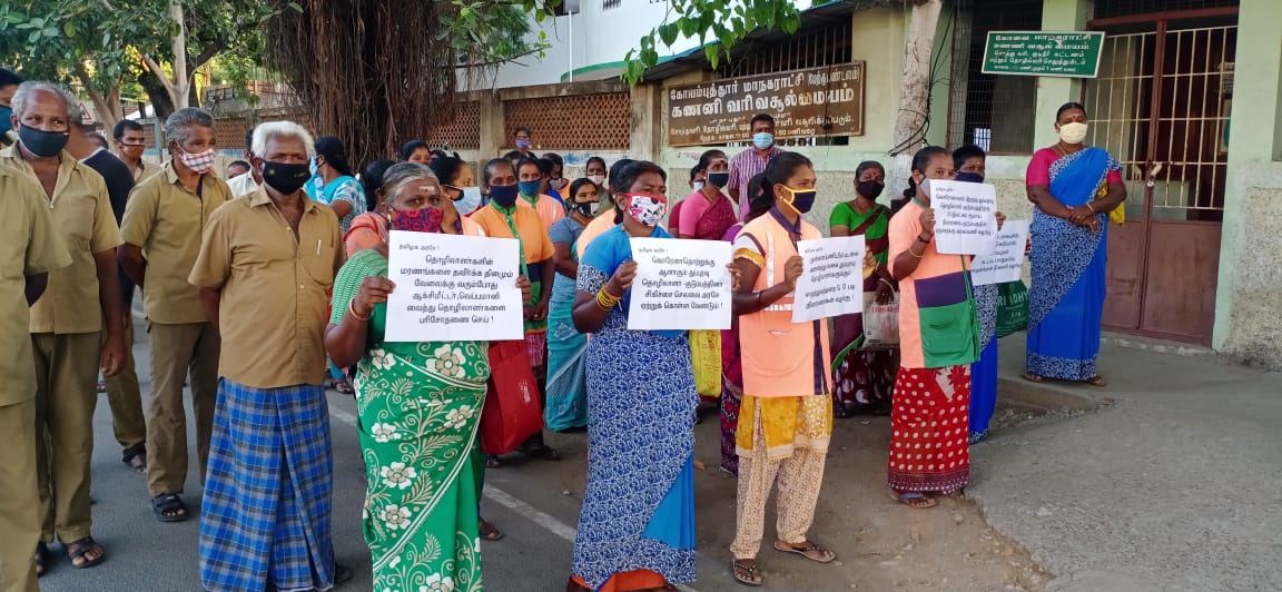 நோய் தொற்றால் உயிரிழக்கும் தொழிலாளர் குடும்பங்களுக்கு 25 லட்சம் நிவாரணம் வழங்க வேண்டும்,