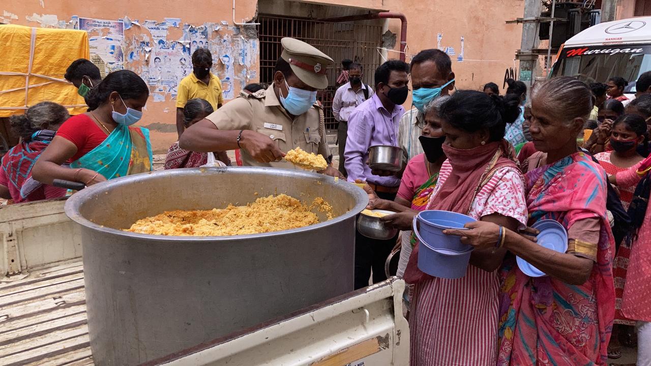 சென்னை பெரும்பாக்கத்தில் காவல் துறை ஆய்வாளர் உணவு வழங்கினார்