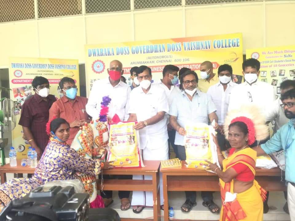 தமிழ்நாட்டில் கொரானாவால் போடப்பட்ட ஊரடங்கு சில தளர்வுகளை கொடுத்தாலும் இன்னும் கோயில் மற்றும் மதவழிப்பாட்டுதலங்கள் திறக்க அனுமதி இல்லை. அதனால் அண்ணா நகர் தொகுதி சட்டமன்ற உறுப்பினர் திரு M.K மோகன் அவர்கள் அரும்பாக்கத்தில் அமைந்துள்ள வைஷ்ணவ கல்லூரியுடன் இனைந்து 100 நாட்டுப்புற கலைஞர்களுக்கு மளிகை பொருட்கள் அனைத்தும் வழங்கினார்.. தமிழ் மலர் செய்திகளுக்காக செய்தியாளர் நா.புவனேஷ்குமார்