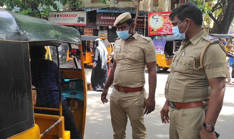 இ- பதிவு அத்தியாவசியம் இன்றி வெளியில் செல்லும் ஆட்டோக்கள், இருசக்கர வாகனங்கள் நகல்கள் சரி பார்த்து அனுமதி பெறாத வாகனங்கள் பறிமுதல் செய்து அபராதம் விதித்தனர்.