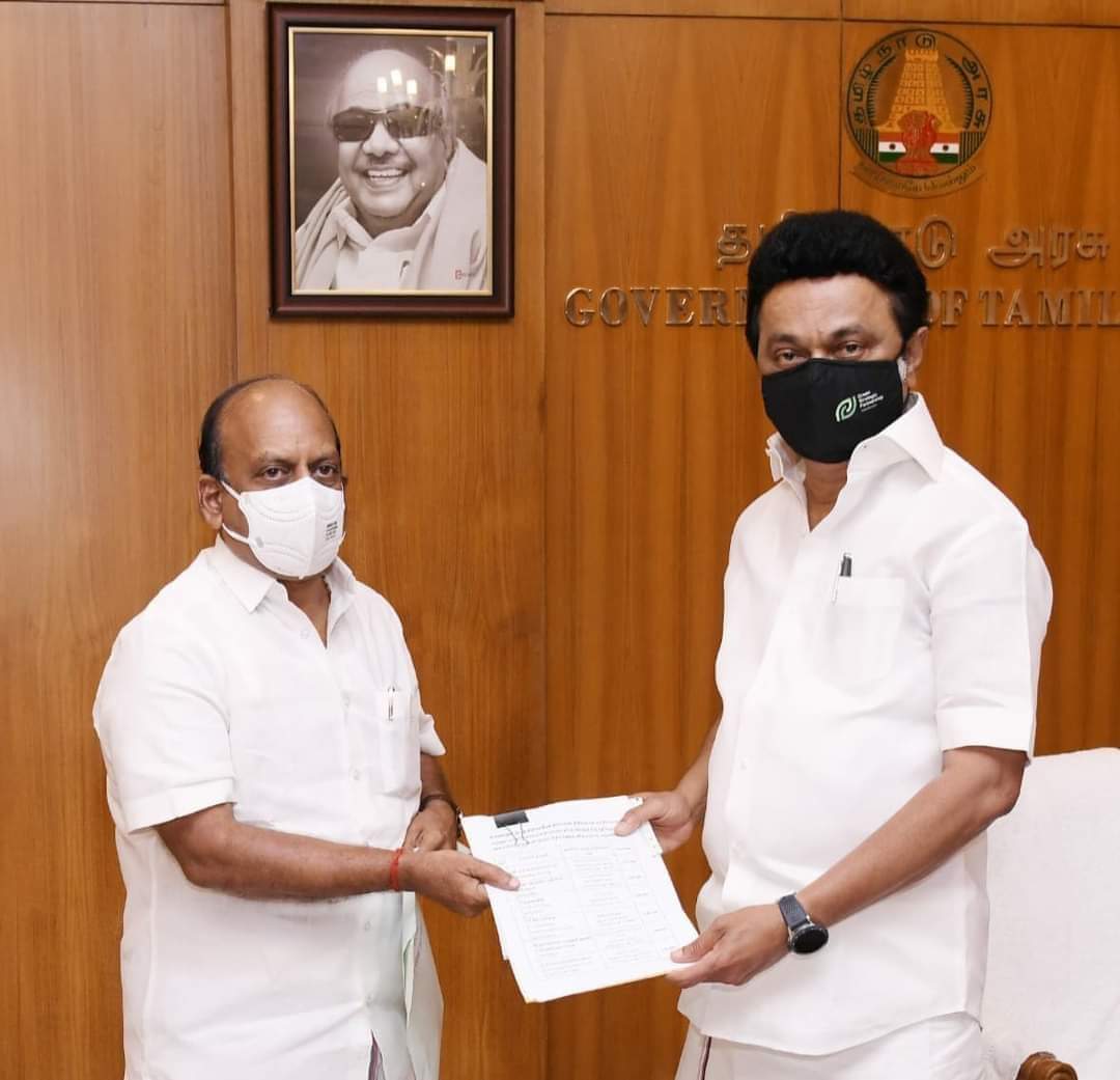 கொரோனா நிவாரணப் பணிகளுக்காக முதலமைச்சர் நிவாரண நிதிக்கு காஞ்சிபுரம் மற்றும் செங்கல்பட்டு மாவட்டங்களை சேர்ந்த பல்வேறு நிறுவனங்கள் மற்றும் பொதுமக்கள் வழங்கிய ரூபாய் 10 லட்சத்து 79 ஆயிரத்து 500 ரூபாய்க்கான காசோலையை காஞ்சி வடக்கு மாவட்ட கழக செயலாளரும் தமிழ்நாடு ஊரக தொழில் துறை அமைச்சருமான தா.மோ.அன்பரசன் அவர்கள், மாண்புமிகு தமிழக முதல்வர் மு.க.ஸ்டாலின் அவர்களை தலைமைச் செயலகத்தில் நேரில் சந்தித்து வழங்கினார்.