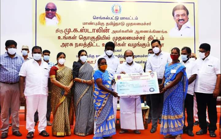 செங்கல்பட்டு : மாண்புமிகு தமிழக முதல்வர் ஸ்டாலின் அவர்களின் ஆணைக்கிணங்க, செங்கல்பட்டு மாவட்டத்தில் “உங்கள் தொகுதியில் முதலமைச்சர்” துறையின் கீழ் பெறப்பட்ட மனுக்கள் மீது நடவடிக்கை எடுக்கப்பட்டு ரூ.3.21 கோடி மதிப்பீட்டில் பயனாளிகளுக்கு அரசு நலத்திட்ட உதவிகளை தொழில்துறை அமைச்சர் தா. மோ. அன்பரசன் அவர்கள் வழங்கினர். இந்நிகழ்வில் தென் சென்னை நாடாளுமன்ற உறுப்பினர் தமிழச்சி தங்கபாண்டியன், காஞ்சிபுரம் நாடாளுமன்ற உறுப்பினர் க.செல்வம்,
