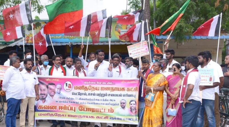 விலையேற்றத்தை கட்டுப்படுத்த தவறிய ஒன்றிய அரசை கண்டித்து மனிதநேய ஜனநாயக கட்சியின் நெல்லை மாவட்டம் சார்பாக பேட்டையில் கவன ஈர்ப்பு போராட்டம் நடைபெற்றது.