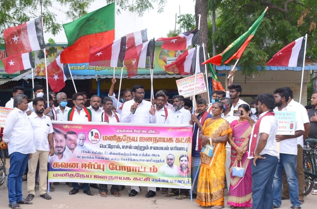 விலையேற்றத்தை கட்டுப்படுத்த தவறிய ஒன்றிய அரசை கண்டித்து மனிதநேய ஜனநாயக கட்சியின் நெல்லை மாவட்டம் சார்பாக பேட்டையில் கவன ஈர்ப்பு போராட்டம் நடைபெற்றது.