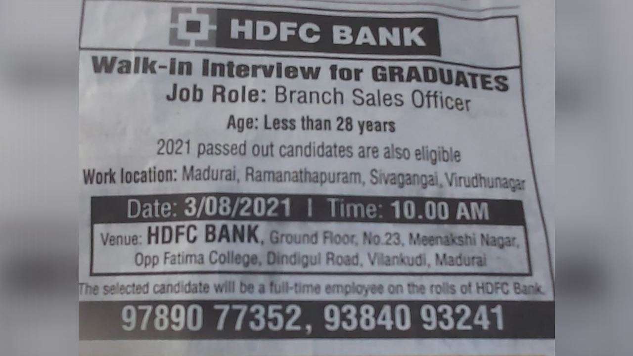 About us 2021 batch students வேலைக்கு விண்ணப்பிக்க தகுதி இல்லை என தனியார் வங்கி. August 4, 2021 AASAI MEDIA “2021 ஆண்டு தேர்ச்சி பெற்ற மாணவர்கள் வேலைக்கு விண்ணப்பிக்க தகுதியற்றவர்கள்” என்று தனியார் வங்கியின் வேலை விளம்பரத்தில் குறிப்பிடுள்ளது பரவலான சர்ச்சைகளை எழுப்பியிருக்கிறது. 2021 ஆண்டு தேர்ச்சி பெற்ற மாணவர்கள் வேலைக்கு விண்ணப்பிக்க தகுதியற்றவர்களா?தனியார் வங்கி விளம்பரத்தால் சர்ச்சை