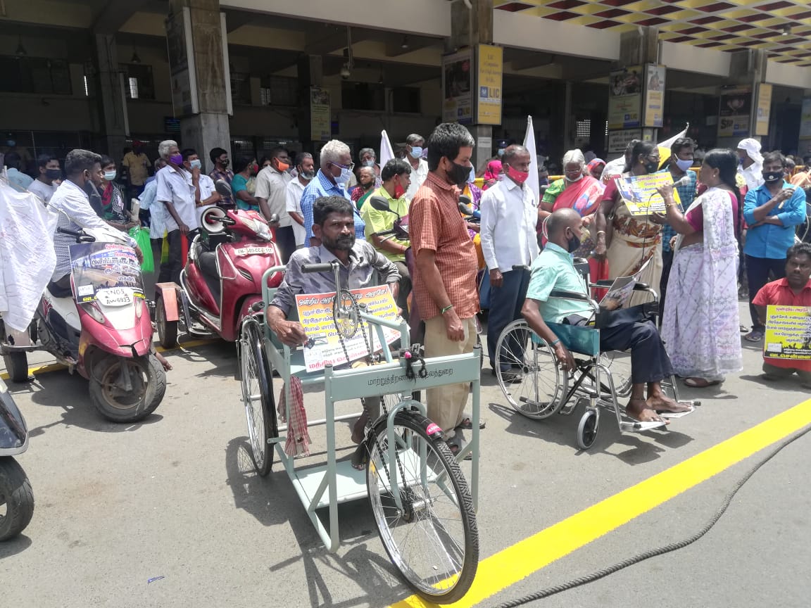 இதில் புதுச்சேரி, சண்டிகர் யூனியன் பிரதேசங்களில் வழங்குவதை போல் மாற்றுத்திறனாளிகளுக்கு பெட்ரோலுக்கு மானியம் வழங்க வேண்டும் என்று ஒன்றிய அரசுக்கு கோரிக்கை வைத்தனர். இந்த ஆர்ப்பாட்டத்தில் ஏராளமான மாற்றுத்திறனாளிகள் கலந்து கொண்டனர்.