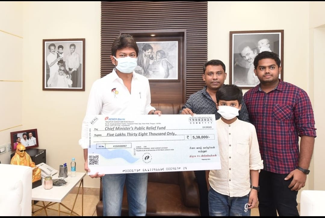 சீனாவின் வெளிநாடு வாழ் தமிழர்கள் அளித்த கொரோனா தடுப்பு நிவாரண நிதி ரூ, 5.38, லட்சத்தை திருவல்லிக்கேணி சட்டமன்ற உறுப்பினர் திரு/ உதயநிதி ஸ்டாலின் MLA, அவர்களிடம் திரு/ பிலிப் ராஜா திரு/ பூபதி ராஜா ஆகியோர் நேரில் வழங்கினார்கள்.