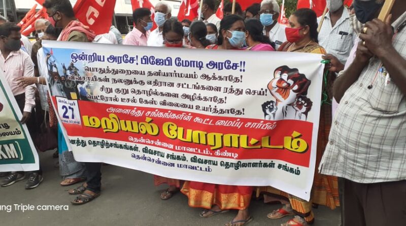 ஒன்றிய பிஜேபி அரசு பொதுத்துறை நிறுவனங்களை தனியார் மயமாக்குவதை கண்டித்தும் ஒன்றிய அரசினுடைய வேளாண் சட்டங்களுக்கு எதிராகவும் பெட்ரோல் டீசல் விலை கேஸ் விலை ஏற்றத்தை கண்டித்து