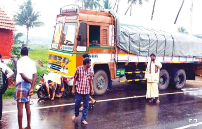 லாரி மீது ஸ்கூட்டர் மோதி விபத்து.